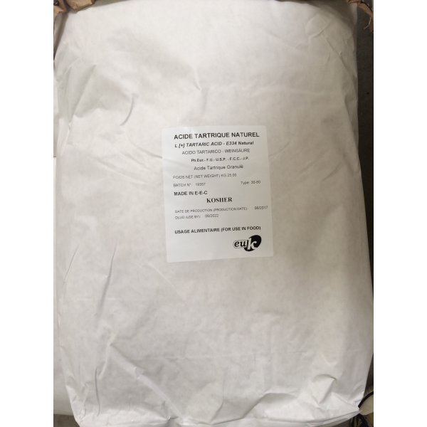 La o corectie mai mare de aciditate, se administrează in vin in doze reduse, alaturi de acidul citric, in scopul de a evita pericolul precipitarii sale sub forma de tartrat acid de potasiu.