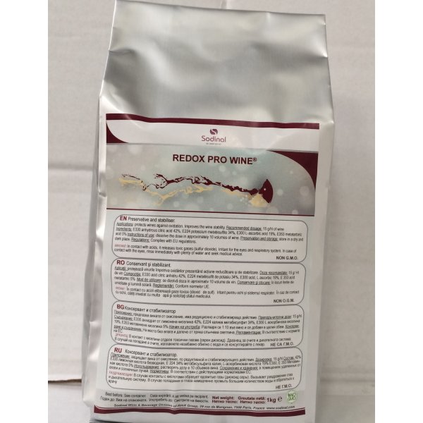 Redox Pro Wine este o combinatie de metabisulfit de potasiu, acid citric, acid ascorbic si acid metatartric. Produs complex ce contribuie la stabilizarea antioxidanta, metalica si tartrica.
